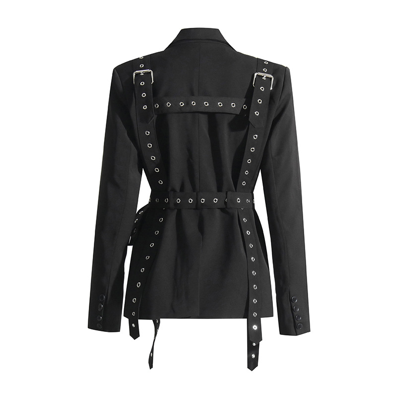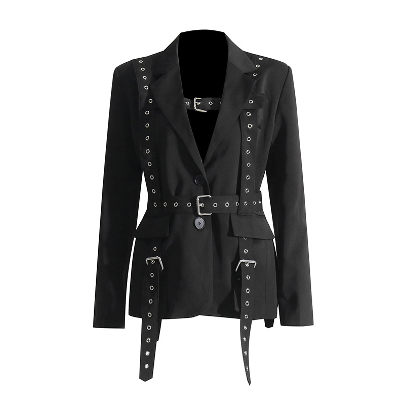 Elegant Rivet Buckle Tight Waist Blazer