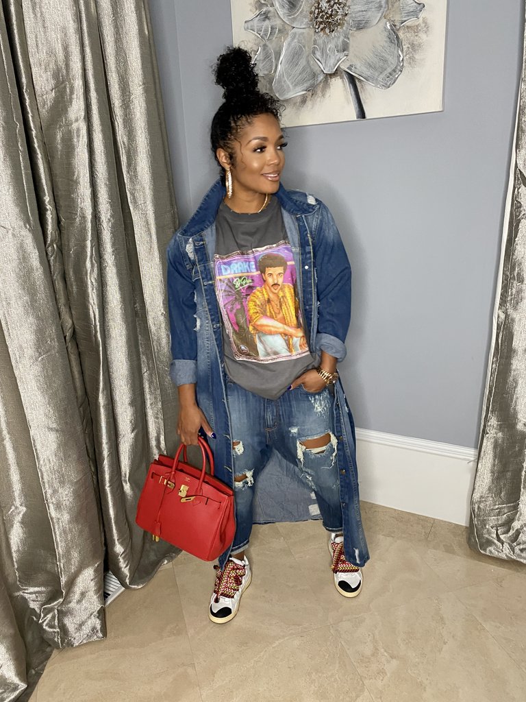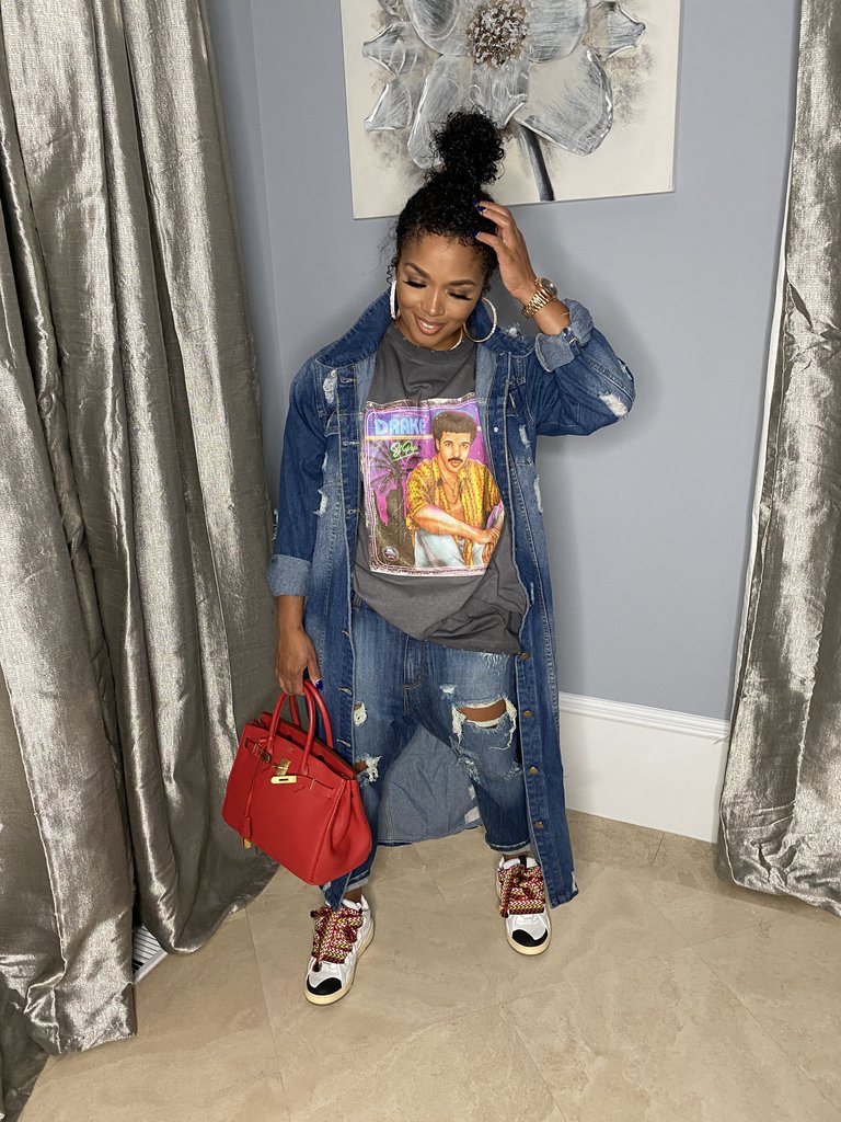 New Long Trench Coat Ripped Denim