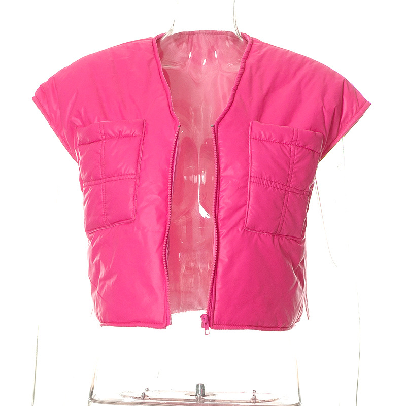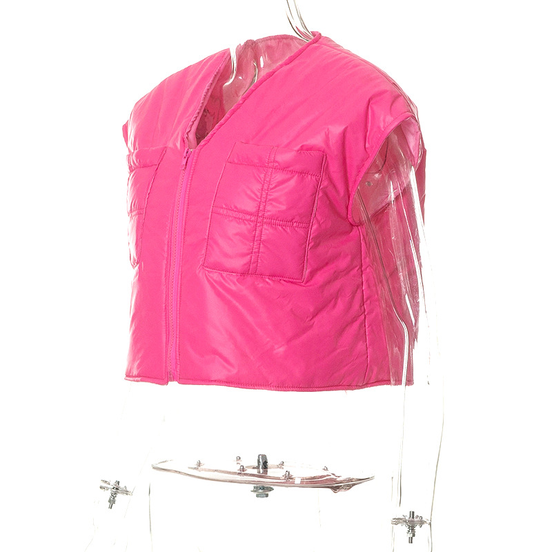 Winter Sleeveless Zipper Pocket Casual Women Cotton Padded Jacket Vest Top